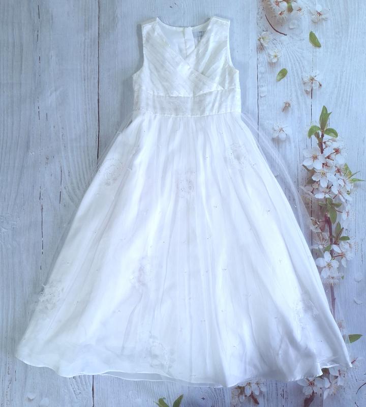 Шикарное белое платье Debenhams указано 6 лет. Можно по образу снежинки, зимы, ангела. Общая длина от плеча до низа 89 см, от плеча до пояса 25 см, ширина под подмышками 29 см, талии 28 см. Стан супер. В ПОДАРОК поставит снежинки россыпью для украшения платья (см. фото👉)