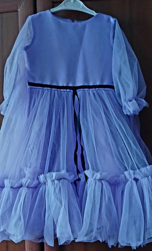 Б/в но в идеальном состоянии праздничное платье эа девочку, юбка из фатина,ззади завязывается на фатиновый бант.На первых фото не передает цвет, окрашенная в реале сиреневого цвета, нежно-фиолетовая.Подойдет на 116-122р,можно и на 110р, то есть на 5-7роков