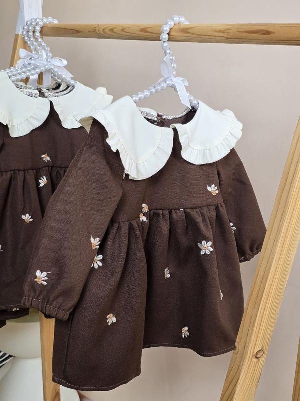 ) 🔹Неймовірна стильна сукня для маленьких модниць. 🔹Насичений шоколадний колір, з милим принтом. 🔹 Матеріал - мікро-вельвет, на рукавчиках резинки, застібка ззаду - гудзики. ЗАМІРИ: ▪️9-12 - довжина 41 ширина 26 рукав 26 ▪️12-18 - довжина 45 ширина 27 рукав 28 ▪️18-24 - довжина 50 ширина 29 рукав 30 ▪️2-3 - довжина 53 ширина 30 рукав 33 📌рукав від плеча!!! 📌ширина - під рукавами (напівобхват грудей) фото та відео реал (туфельки також в наявності)