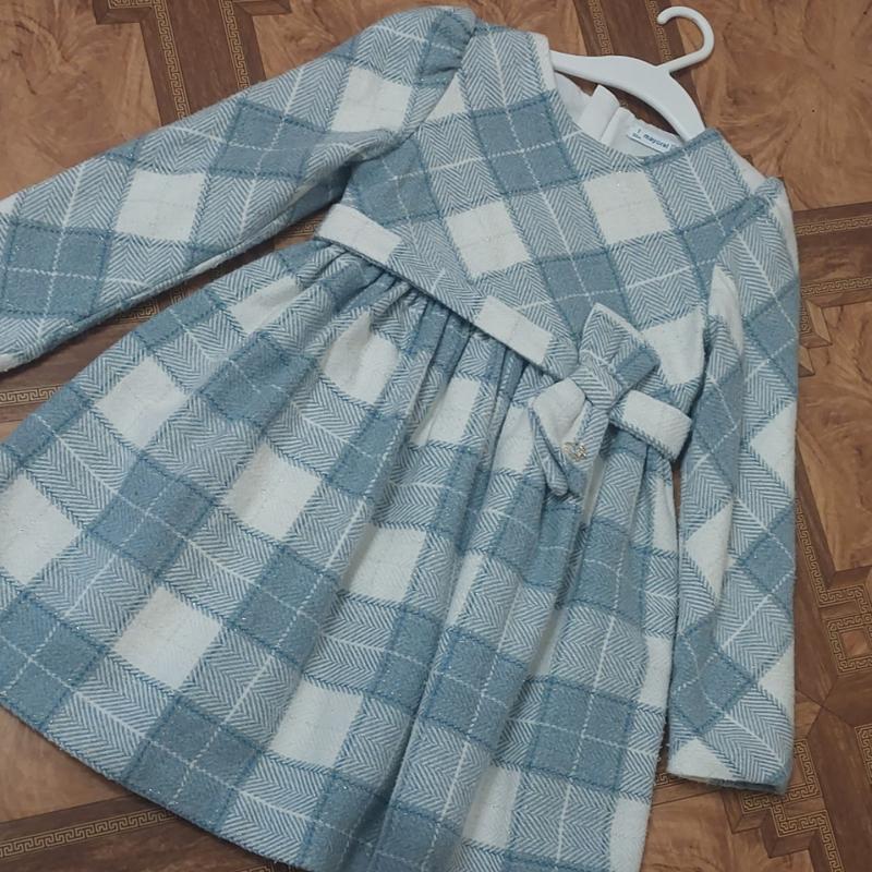 Платье от Mayoral, теплое стильное с стильным бантом на поясе.