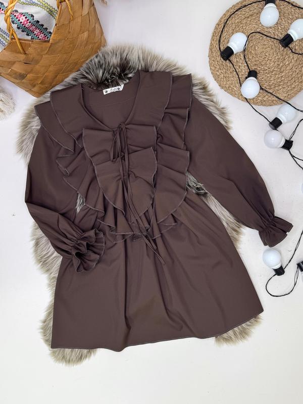 Приголомшлива сукня з пишними воланами в талії та манжети під резинку тканина щільний супер софт СУПЕР ЯКІСТЬ! ціна 1060 грн зріст/довжина/пог/рукав від горловини похибка+-2см 140-146/75/44/61-1шт 146-152/78/44/63-1шт 152-158/82/45/66-1шт 158-164/86/45/69-1шт 164-170/90/46/72-1шт