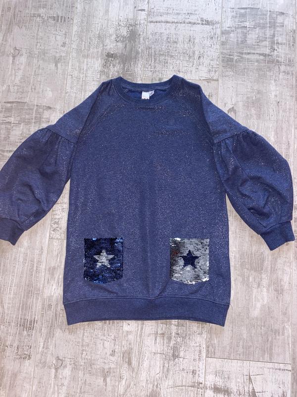 Стан гарний. На байці. Рукава к низу розширені як фанаріка з трикотажним манжетом. Паєткі змінюються. Довжина 57 см, довжина рукава від горловини 50 см, під руками 37 см по стегнам 39 см. Пересилаю.