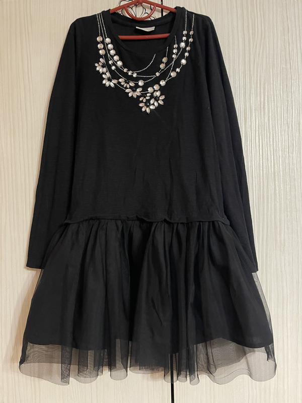 Святкова сукня з фатиновою спідничкою і вишивкою на грудях, як нова, 100% котон Розмір вказаний 10 р (140), але краще орієнтуватися на виміри Довжина 74, пог 37, плечі 29, рукав 52 Ціна 270 грн