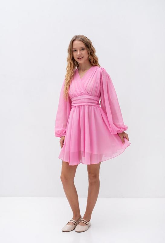 через кнопку купить только полная оплата!!! Святкова сукня на запах Ткань - шифон на подкладке Пояс пришитый завязывается сзади. Замеры: 146 длина-72см, полуобхват груди - 37см, рукав от плеча - 54см. 152 длина-76см, полуобхват груди - 39см, рукав от плеча - 57см. Мс