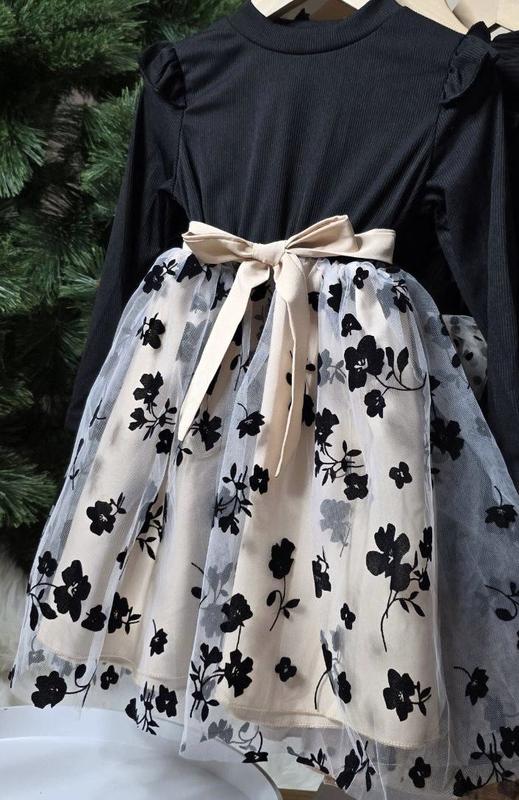 Трикотажний - рубчик м'якенький верх, юбка - бавовняний підклад і шар фатину. ЗАМІРИ орієнтуйтесь на заміри. Довжини 2 - по під'юбник/по фатін, рукав від плечевого шва. 90- довжина 45/47 ширина 25 рукав 31 100- довжина 52/55 ширина 26 рукав 33 110- довжина 57/61 ширина 28 рукав 36 120- довжина 60/63 ширина 30 рукав 39 125- довжина 61/65 ширина 31 рукав 40