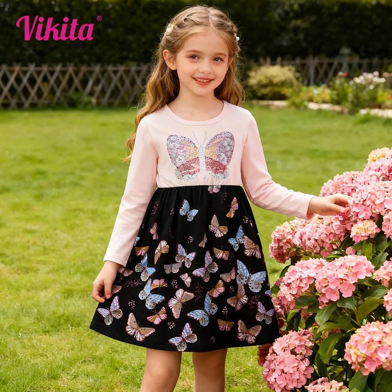 Детское трикотажное платье на девочку. Платье с длинным рукавом и аппликацией, пайетки по переду. р.116, 5-6 лет: рукав от плеча 39, длина 63, ширина груди (ПОГ) 33