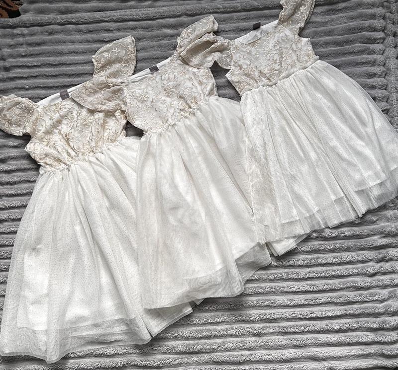 Довжина сукні на 3-4 роки - 54 см, напів обхват грудей - 25 см. Довжина сукні на 5-6 років - 61 см, напів обхват грудей - 28 см. Довжина сукні на 8-9 років - 67 см, напів обхват грудей - 31 см. Ціна вказана за 3 сукні. Можна купити окремо.