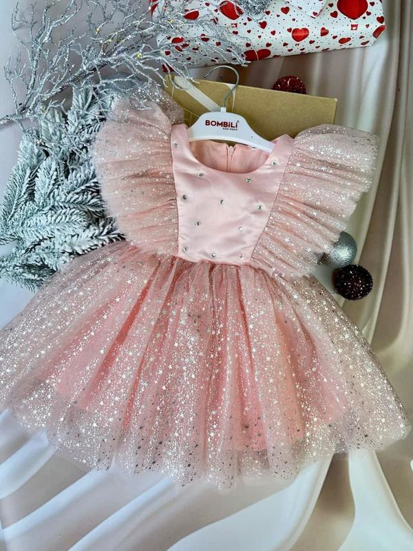 ✨ Ошатна сукня для дівчинки ✨ Розмір: 110 Напівобхват грудей: 33 см Довжина: — по підкладці 63 см — з фатином 66 см Ніжний рожевий колір із блискучим фатином та декоративними камінцями на корсеті. Об’ємні рукави надають сукні святковості. Застібається на потаємну блискавку. Позаду — знімний бант на кнопках. Чудовий варіант для свят, фотосесій та особливих подій 🎀