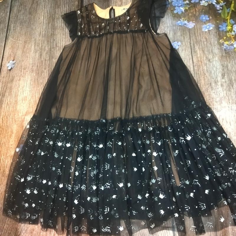 Нарядное платье для девочки Размер 134 Блестит на свету, пышная юбка Замеры: Длина: 71 см Плечи: 29 Под руками: 37 Цена указана с комиссией сайта.