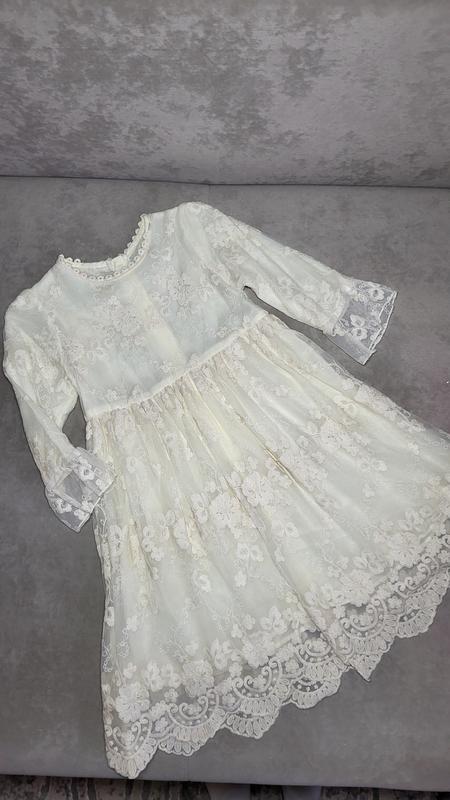 Нежное, кружевное платье для девочки На возраст 5-7роков, замеры есть на фото Новая, один раз одевали на фотосессию. Без дефектов Легкая, две подкладки, Рукав 3/4 На рост около 122см