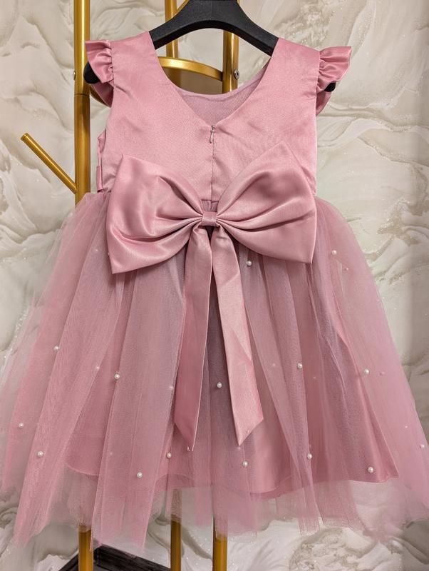 Святкова сукня для дівчинки прикрашена бантом пудрою ого кольору