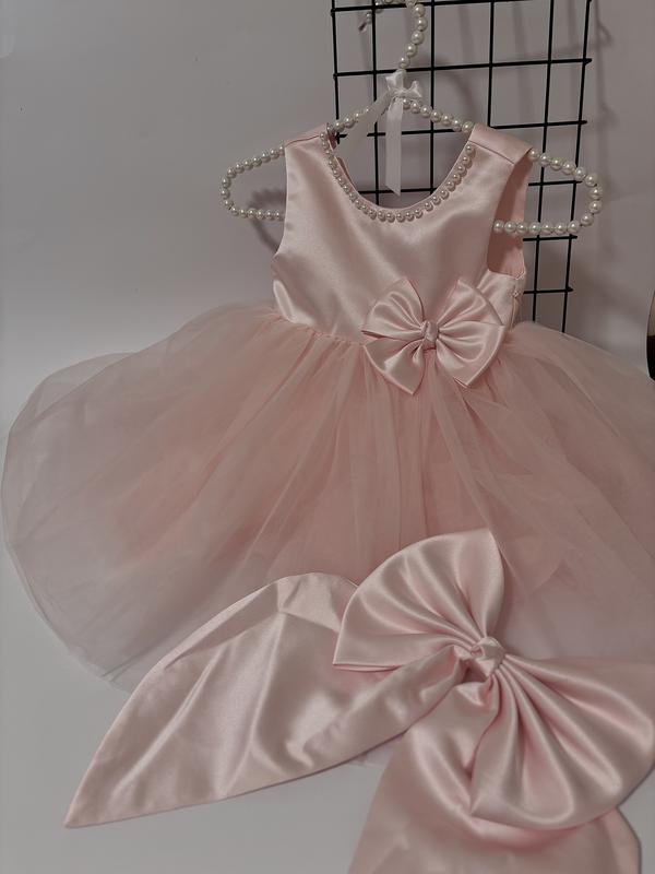 Пишна багатошарова спідничка, елегантний сатин та величезний бант додають образу святковості. Особливості: * великий знімний бант * перлинна обробка по горловині * пишна фатинова спідничка Розмір: 90,100 Заміри уточнюйте