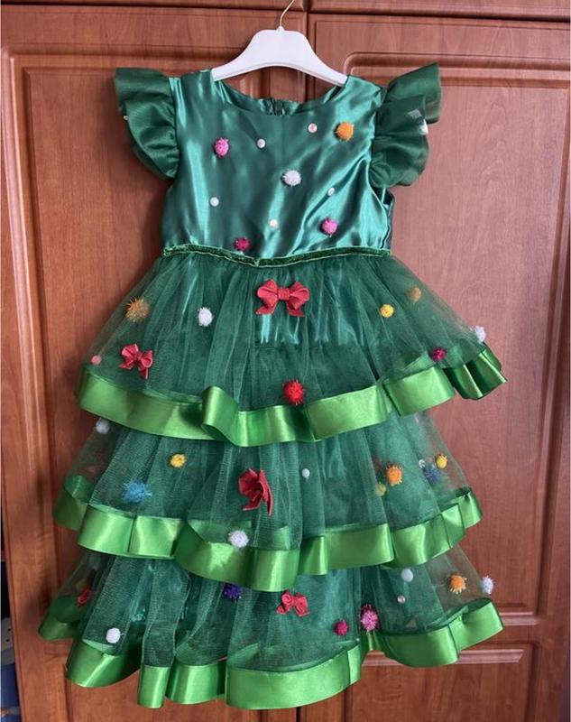 сукня ялинка для дівчинки на 4-5-6 років, орієнтуйтеся по замірах. одягалася один раз на виступ в садок. ог 29 см, довжина разом з фатіном 70 см