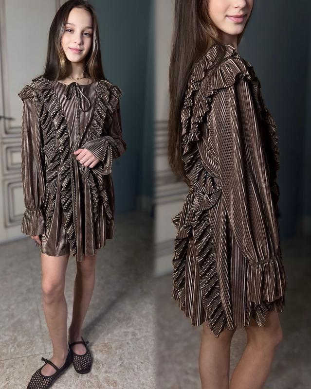 Неймовірно гарна сукня Тканина: плісе нейлон-стрейч Це просто ваууууу 💖 Ідуть повномірні! Підходять на будь-яку фігуру,в талії резиночка. Розміри: 🤍 134 🤍 140 🤍 146 🤍 152 🤍 158 Мд Заміри: Рукав від плеча/довжина/пог 134 - 50/64/34 140 - 52/66/35 146 - 55/76/36 152 - 56/78/37 158 - 58/80/38