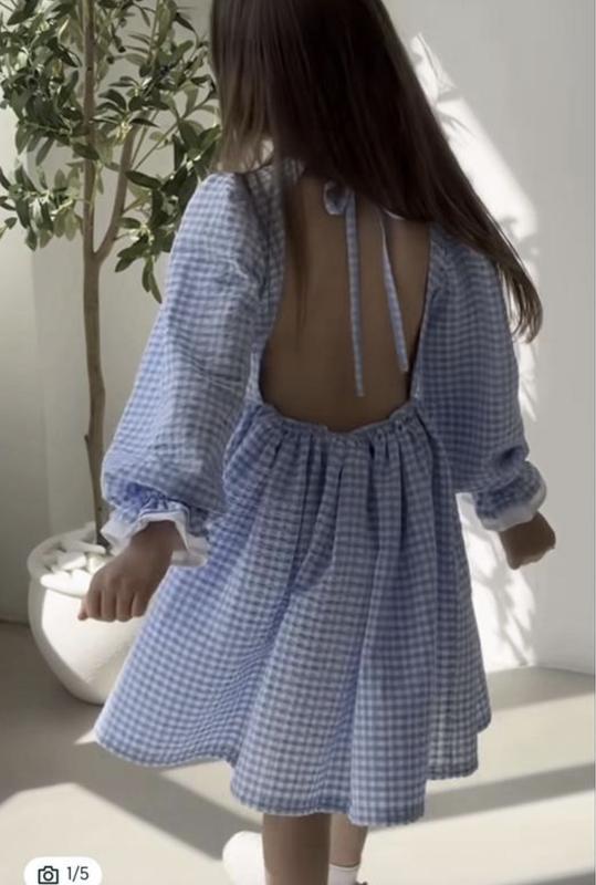 Стильна блакитна сукня в клітинку, дитина не залишиться без уваги. Дуже гарна. Довжина 73, рукав 55. Без нюансів З 19.12-05.01 не зможу відправити