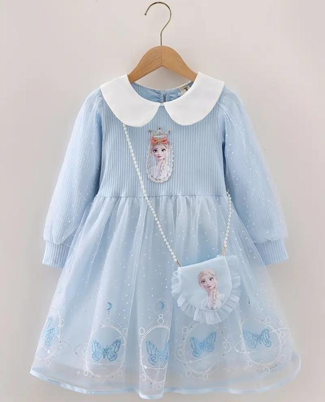 🌹 детское праздничное платье "Эльза" 🌹 сумочка в комплекті трикотаж рубчик, тянется два слоя фатина + подкладка украшено глиттерными рисунками завязывается пояс ЗАМІРИ от плеча до пояса/длина полная/ширина по груди/рукав от плеча ✅110р 24/60/30/36 ✅120р 25/65/32/39 ✅130р 26/70/33/41 ✅140р 27/75/35/44