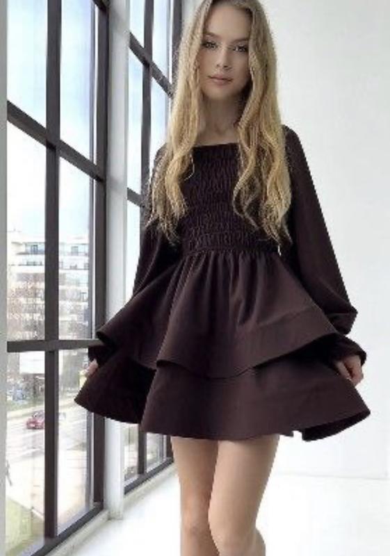 В наявності! Шикарна сукня Florence Тканина- атлас. Колір -шоколад Мд Розмір/довжина від плеча/пог тягнеться до/довжина рукова 146/67/40/62 152/70/41/64 158/75/43/68 164/77/44/70