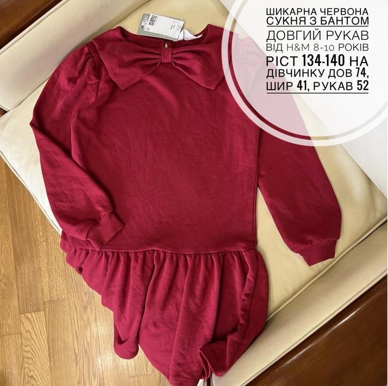 шикарна червона сукня з бантом довгий рукав від H&M 8-10 років ріст 134-140 на дівчинку дов 74, шир 41, рукав 52