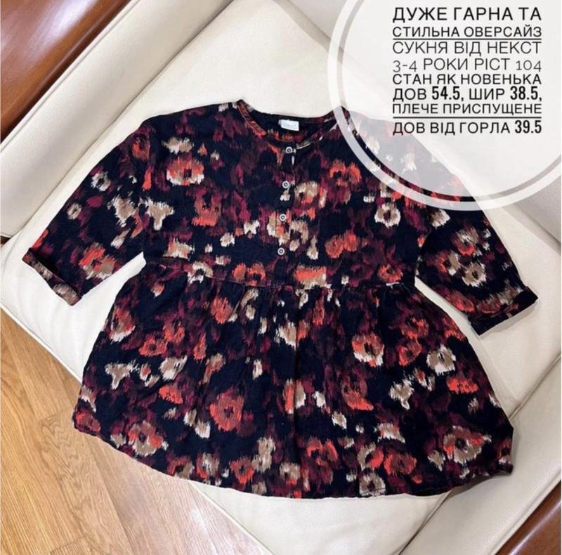 Дуже гарна та стильна оверсайз сукня від некст 3-4 роки ріст 104 стан як новенька дов 54.5...