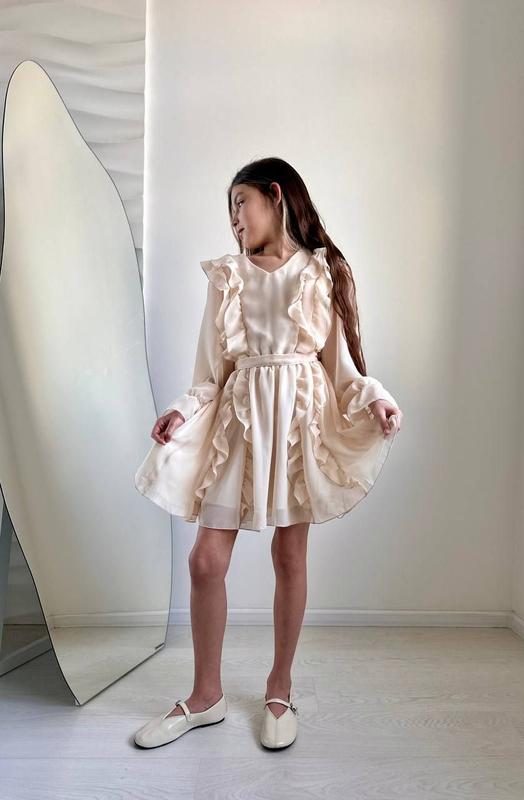 Шикарна шифонова сукня!! Тканина: шифон. Платье на трикотажной подкладке. Цена 900грн Накладной платеж(250) ‼️Замеры: ✔️р.140 длина/рукав/пог 72см/56см/40см ✔️р.146 длина/рукав/пог 76см/58см/42см ✔️р.152 длина/рукав/пог 78см/60см/44см ✔️р.158 длина / пог 81см / 63см / 46см ✔️р.164 длина/рукав/пог 85см/65см/47см ‼️Длина рукава указана от плеча!️ ▪️N5T