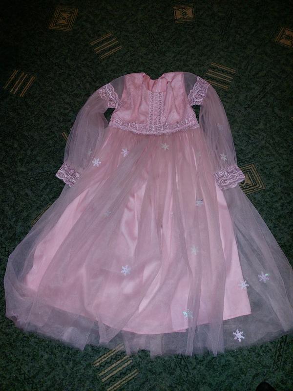 Платье праздничное, в идеальном состоянии, очень красивое, на худи девочку, нежно розовое, вышитое жемчужинками, на груди гипюровая вышивка, фатиновые рукава и фатиновая юбка, поднизом подкладка, длинная, на фатине нашитые снежинки, платье принцессы