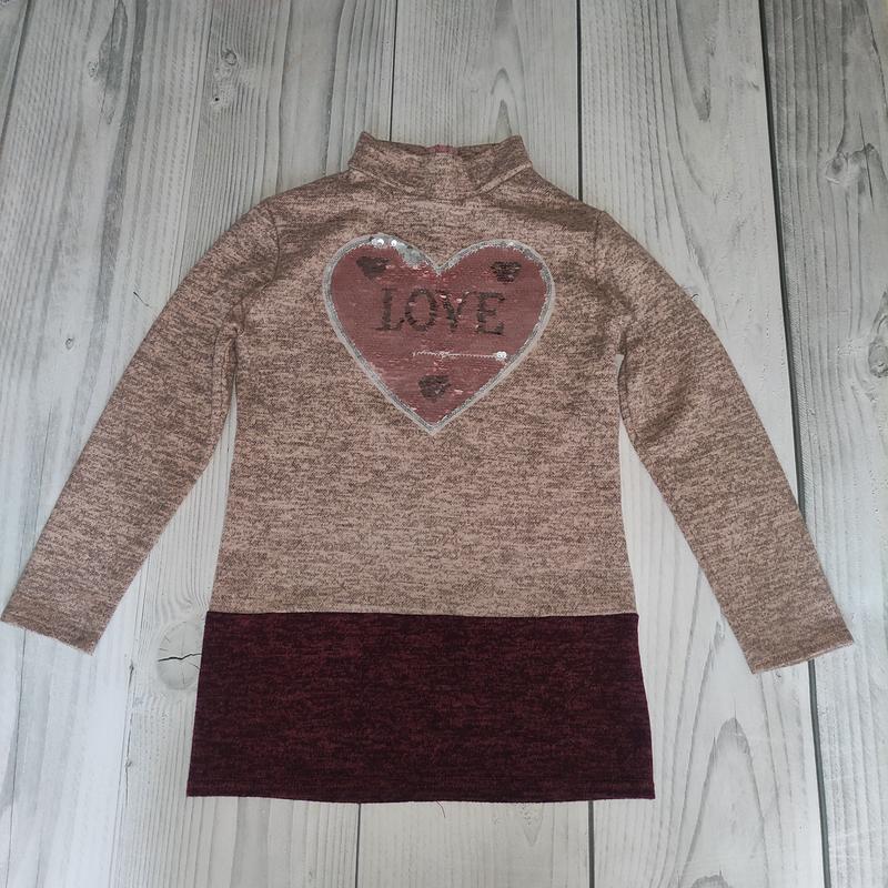 платье после одного ребенка.состояние зорошее.размер M (примерно 8-9 лет).бирки с составом нет.полиэстер сверху похож на искусственный кашемир(так называют ткань).паетки на сердце переворачиваются.длина 58,рукав 45,в груди 37,талия 35,бедра 38. смотрите другие мои объявления