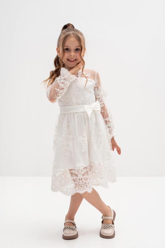 🌲Казкова сукня для маленьких красунь🥰 тканина гіпюр з вишивкою позаду застібається на блискавку 🫶колір МОЛОЧНИЙ Чудова якість 116-2 шт 🫶116-довжина 60,пог 30,рукав 42 ЦІНА 1130