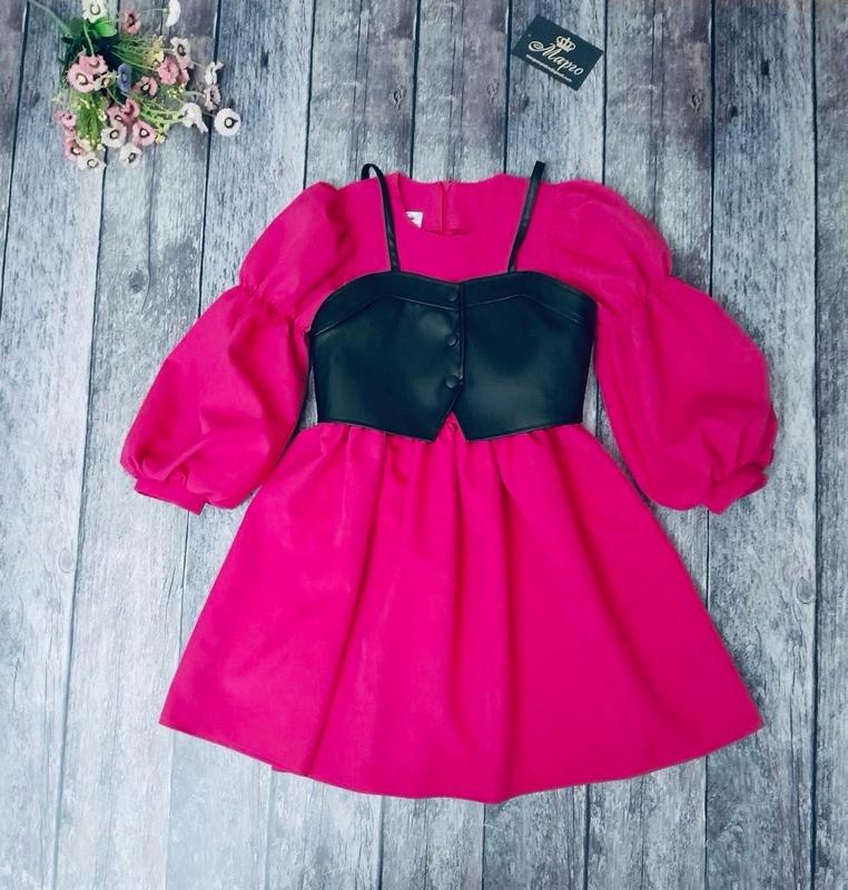Невероятно нежное и романтичное платье Кожаный топ добавляет загадочности и романтизма образу юной леди ткань костюма+экокожа КАЧЕСТВО ЧУДОВА!! РЕКОМЕНДУЮ!!! цена 1030грн ПОЛНОМЕРНАЯ МОДЕЛЬ 158-1шт ПОГ/длин/рукав от шеи 140/34/72/55 146/37/76/59 152/39/82/64 158/41/86/66