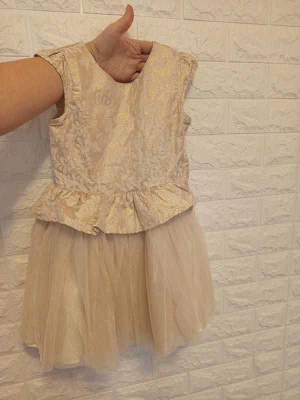 Невероятное платье на маленькую принцессу 4-5 рочков. в жизни выглядит намного лучше, чем на фото! Общая длина от горловины - 55 см Под ручками - 28см В талии -26 с верхняя часть из плотной ткани и не тянется, сбоку скрытая молния по всей длине - подкладка Очень красивый цвет- беж+золото!!