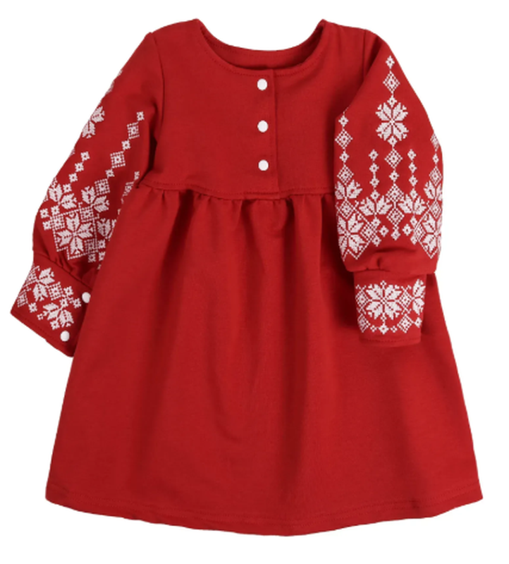Платье яркого красного цвета на рукавах украшено белой вышивкой. Вырез круглый. Рукав длинный. Застежки - кнопки. Материал: двунитка Состав: 80% хлопок Цвет: красный Артикул: : 13764-26 Цена зависит от размера Размеры: 86, 116 Замеры на последнем фото Отправляем в течение 1-3 дней. Все размеры и цвета находятся в наличии, но при создании заказа наличие уточняйте, пожалуйста. После платья по предоплате 100 грн. Есть много других моделей. Смотрите другие Мои объявления.