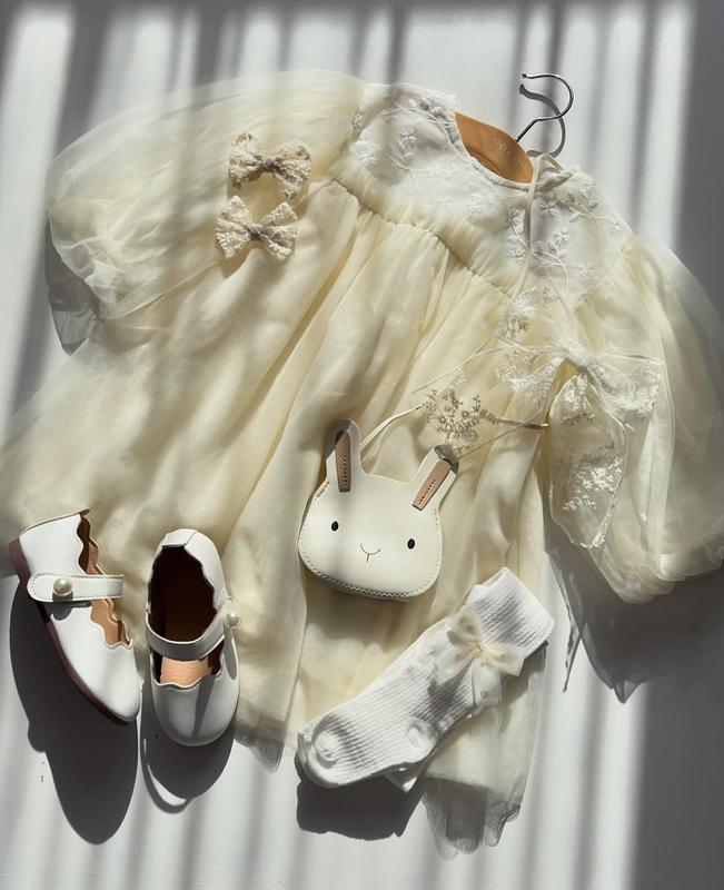Нова молочна фатинова сукня на дівчинку 3р. Рукав від плеча 29см, довжина 53см, плечі 29см