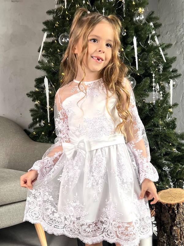 🌲Казкова сукня для маленьких красунь🥰 тканина гіпюр з вишивкою позаду застібається на блискавку 🫶колір БІЛИЙ -128 Колір МОЛОЧНИЙ -116