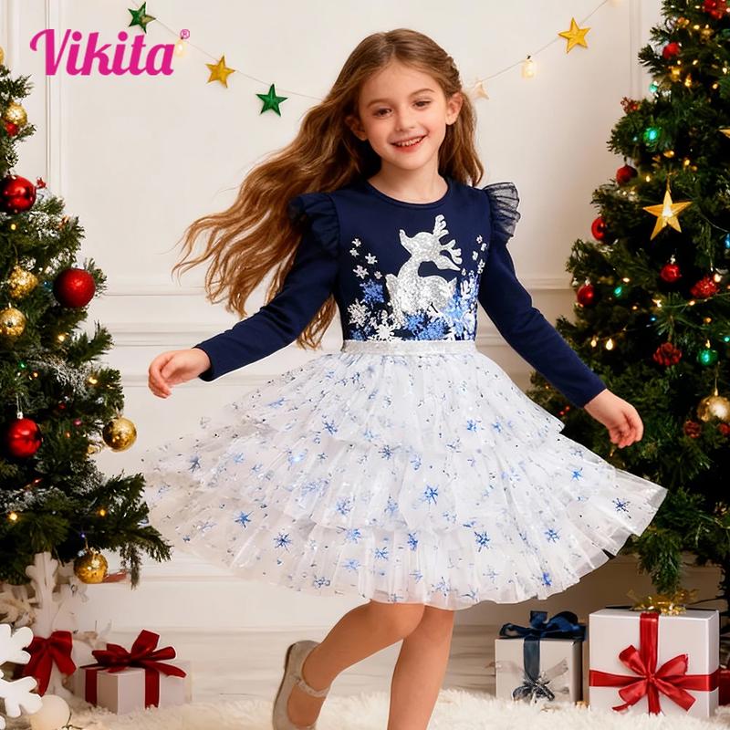 Нарядное праздничное платье для девочки / новогодний олень / 20804