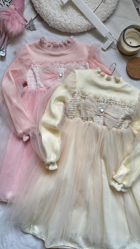 ЦІНА РОЗМІР 110 (3 шт) 120 (3 шт) 130 (2 шт) 140 (3 шт) 150 (3 шт) 160 (3 шт) Вишукана сукня для дівчинки у ніжно-рожевому кольорі 🌸 ✨ Колір: ніжно-рожевий ✨ Верх: м’який трикотаж з делікатним декором ✨ Декор: витончені вставки, бантик та напівпрозорі рукави з фатину ✨ Спідниця: повітряний фатин, що красиво струмує та надає образу легкості Заміри: р.110 - довжина 58 см, ширина 28 см, плечі 21 см, рукав від плеча 36 см р.120 - довжина 62 см, ширина 30 см, плечі 33 см, рукав від плеча 39 см р.130 - довжина 66 см, ширина 31 см, плечі 26 см, рукав від плеча 42 см р.140 - довжина 70 см, ширина 33 см, плечі 27 см, рукав від плеча 45 см р.150 - довжина 75 см, ширина 34 см, плечі 28 см, рукав від плеча 49 см р.160 - довжина 81 см, ширина 36 см, плечі 30 см, рукав від плеча 54 см
