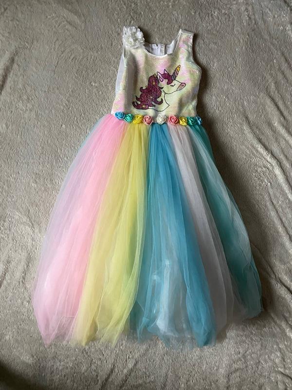 Дуже Пишна сукня Оздоблена паєтками Єдиноріг Орієнтовно 10-12 років Довжина 107 см