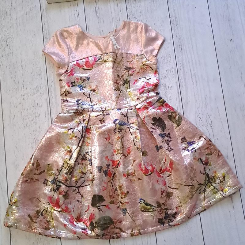 Сукня Next являє собою святковий виріб з жаккардової тканини рожево-золотистого відтінку, що має характерний блиск та гарно переливається. Принт: По всій поверхні тканини присутній яскравий квітковий принт , має короткі рукави та пишну спідницю зі складками, яка добре тримає форму завдяки матеріалу. Присутня підкладка Ця сукня ідеально підходить для особливих випадків, святкових подій чи вечірок. Стан ідеальний. Тканина не тягнеться На 7-8 років . Заміри ⤵️⤵️⤵️ Довжина- 71см Плечі-29см Пог- 33см Пот-33см ☝️☝️☝️☝️ увага!!!! Якщо у Вас упереджене ставлення до секонду та запаху який присутній дані категорії товару, то прошу УТРИМАТИСЯ від покупки. Дякую. Умови ⤵️ Пересилаю новою та укрпоштою. Повернення та обмін відсутній ( або по домовленості) Всі питання вирішуйте до відправки товару. Наложенний платіж є, по ціні перевізника за доставку в обидві сторони . Нова пошта 150 грн. Укрпоштою 50 грн. Скидки від 2 лотів. Відправка кожного дня . Субота та неділя- відправки уточнюйте.Яскрава обновочка кожного тижня. Обожнюю своїх покупців та свою роботу. Всім миру та добра.