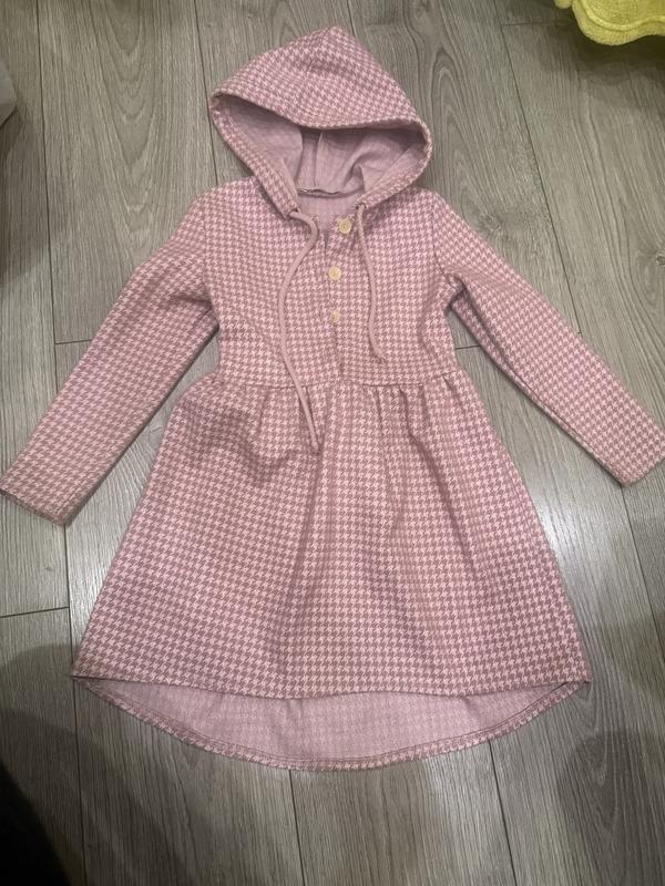 Дуже тепла, приємна на дотик, мабуть присутня вовна, але бірка зрізана, модний фасон з каптуром, спереду коротша сзаду довша, в садочок те що треба!