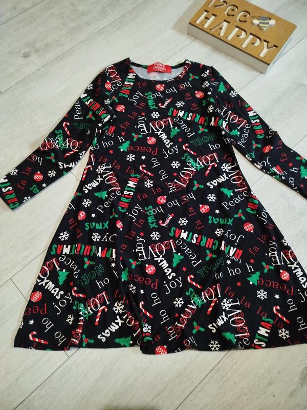 Красивое платье с длинными рукавами с рождественским принтом, узорами снежинок. Вік 7-8р. Заміри на фото.