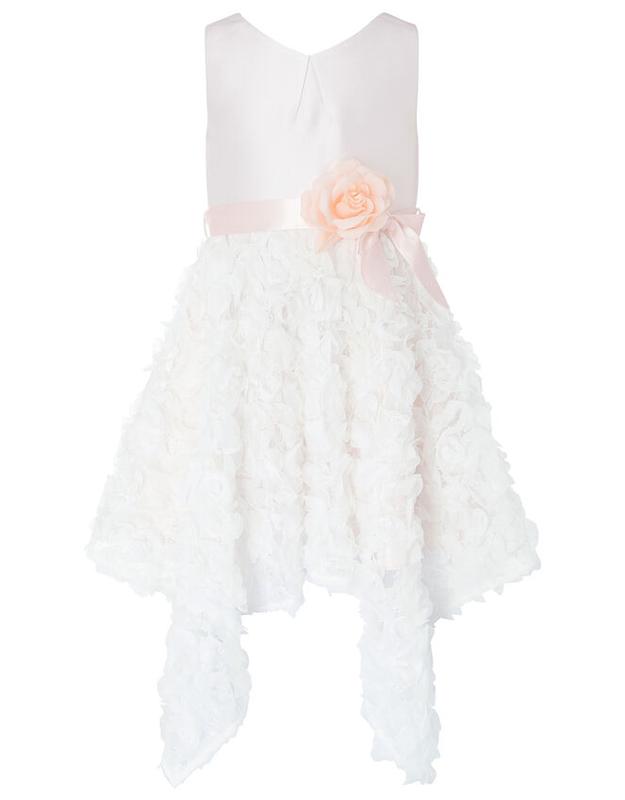 Чарівна сукня відомого британського бренду Monsoon. Красива святкова сукня з асиметричним пишним низом..прикрашена об' ємними 3-D квітами, щоб відчувати себе особливою, справжньою принцесою. Ніжна, романтична..витончена. Колір Рожево-білий... Розмір указаний на 14-15 років.. Прекрасно сідає і на m-s. Сукня в ідеальному стані.. Нова Дивіться по замірах Довжина 92 (по край клинця - 113) Пот 37 Пог43
