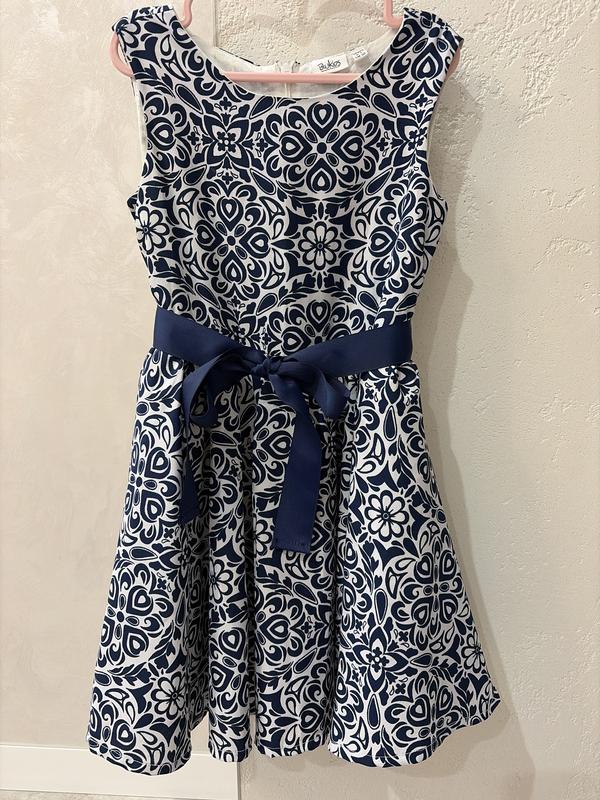 Сукня святкова на 4-5 років. По усій довжині бавовняна підкладка, шар фатину в спідничці. Застібається на блискавку на спинці. Довжина 60 см.