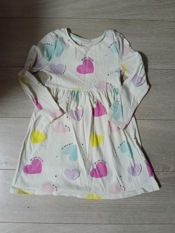 Платтячко на дівчинку.Вік 3-4 рочки.Зріст 98-104см.Колір білий,принт сердечка+написи.Дкже ніжна й світла.Ідеально для садочка.Легке та зручне.
