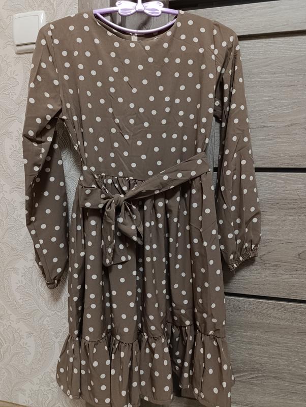 Сукня коричнева в горошок