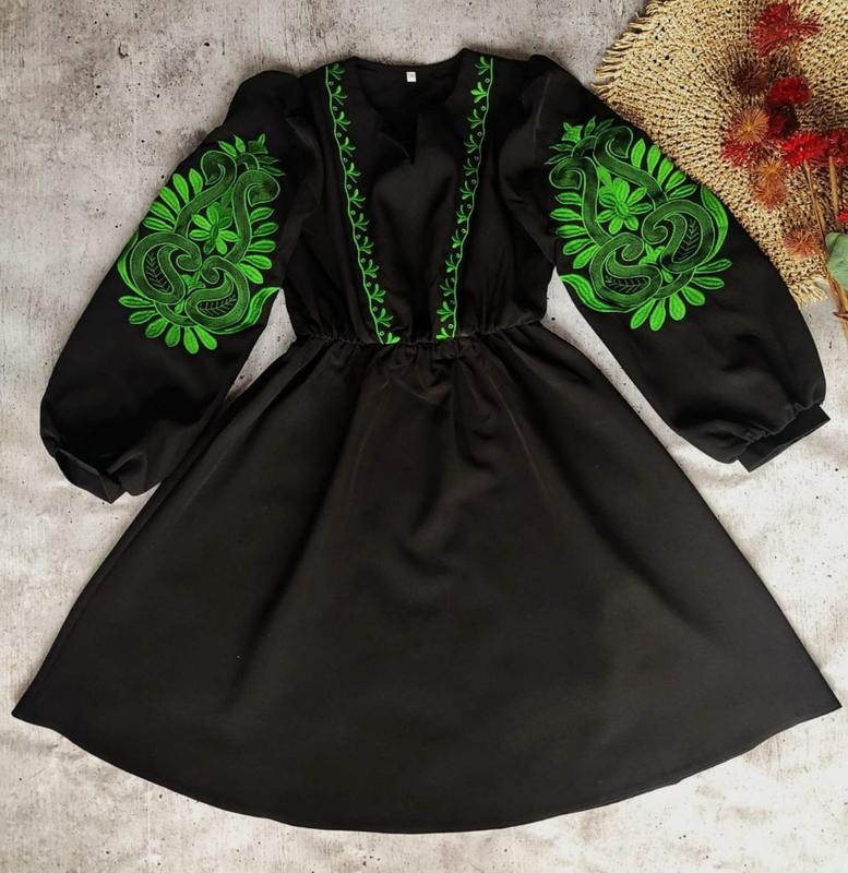 через кнопку купити тільки повна оплата!!!! Сукня з вишивкою(не малюнок!!) Тканина -костюмна, люкс якість. 146 довжина - 85см, напівобхват грудей - 40см, рукав від шиї - 60см. Мс