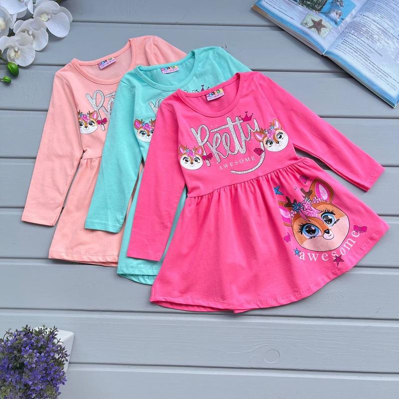 🦋Платье трикотажное с длинным рукавом, рисунок-накат с милым олененкой. производитель Турция. 📐Замеры: (122-128) - дл.58 / пог. 31 /рук. 46