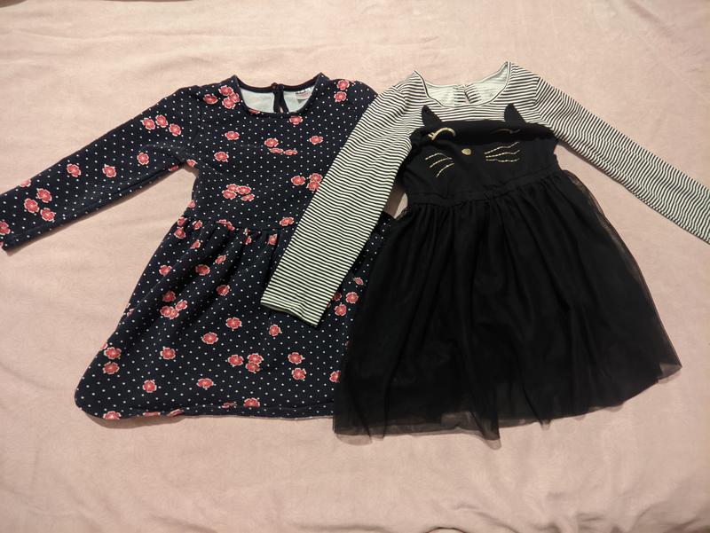Продам 2 детских платья. В цветочек платье размер: 104 см. Платье с котиком 5t. Указана цена за 2 платья.