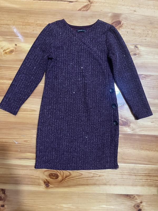 Сукня в ідеальному стані, має розпорішку на ніжці! Дуже стильна! Тканина має люрексову нитку, що додає їй святкового настрою!