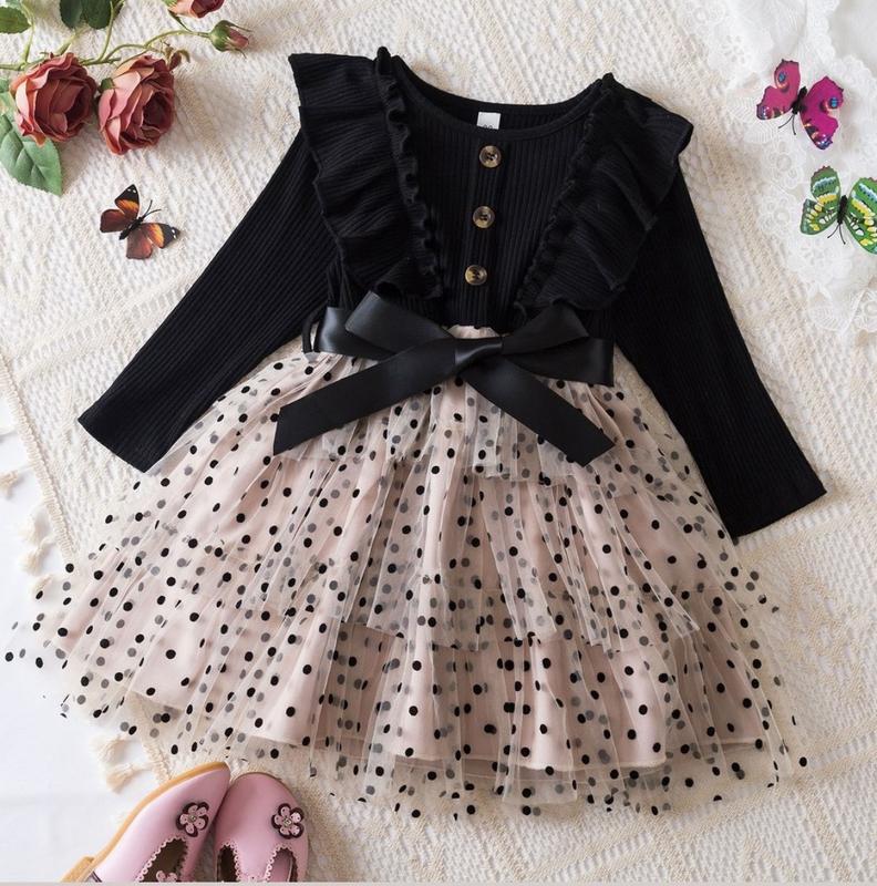 Дитяча святкова сукня. Верх рубчик, спідниця-підкладка та фатин. Завищена талія, рукав 33см, пів обхват грудей 26см.