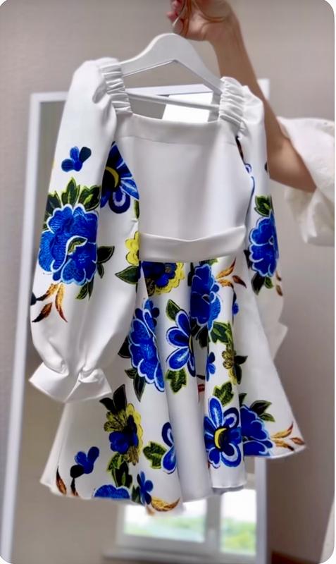 Неймовірна сукня в українському стилі . Яскрава , мʼякенька . Тканина як дайвінг . Одягали на виступ декілька разів . Білий більш до молочного . Довжина 76 см, довжина юбки 45 см , рукав від плеча 55 см, ширина талія 32 см , в грудях 34 см . Перешивали, щоб не просвічувалось . Не тягнеться .