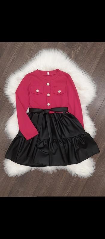Хорошее платье для юной модницы ткань трикотаж вафелька+ экокожа поясок в комплекті рекомендую!!!