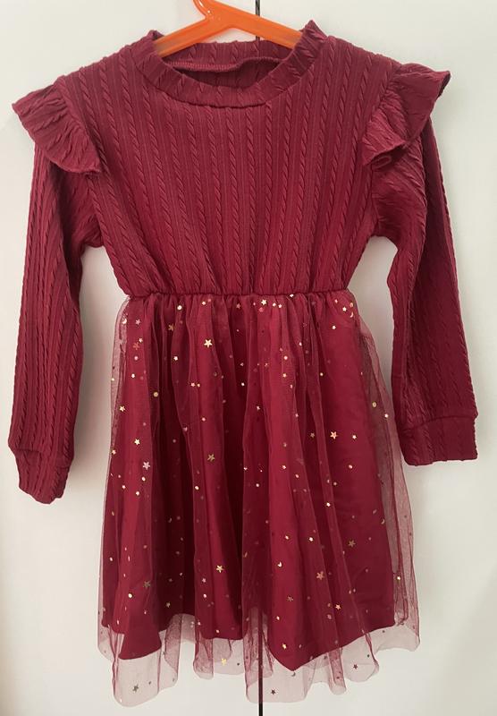 Нова сукня для дівчинки, йде по замірам на вік 110, але краще взяти на 104-110. Приємна тканина Заміри Довжина повністю 56,5 см Ширина під руками 29 см Рукав від плеча 36 см
